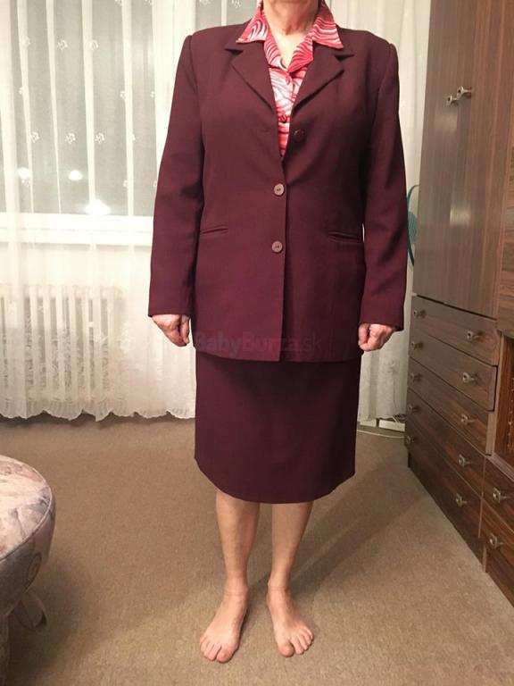 Predám veľmi pekný dámsky kostým, 2-kombinácia, farba bordovočervená, veľkosť č. 46 /XL/,