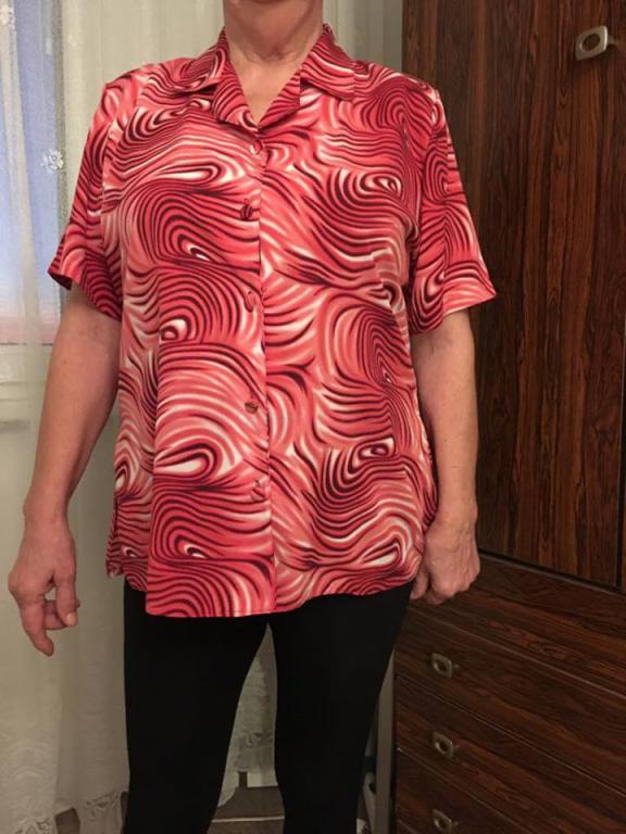 blúzka –dĺžka 70 cm, krátky rukáv, farba bordovo-ružová
