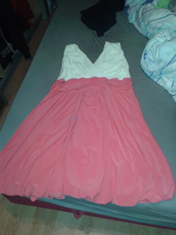 Dávam do ponuky šaty kúpené na svadbu. Mala som ich na sebe raz, od vtedy mi visia v skrini. Sú elastické, obopnú prsia, majú V-čkový výstrih, pod prsiami je pás, sukňa je voľná, padavá. Vzadu sú na zips, aj na chrbte majú mierny V-čkový výstrih. Boli kupované v Maďarsku za 50EUR.