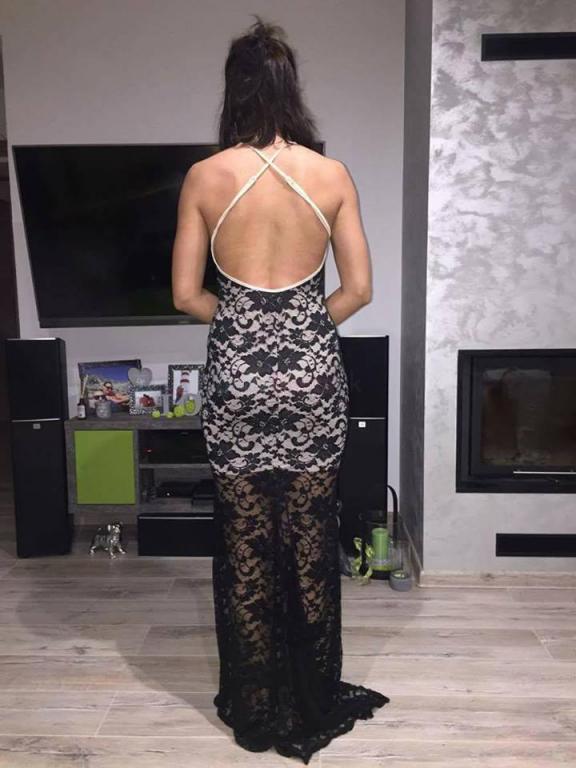 Predam tieto luxusne cipkovane saty s holym chrbtom a vleckou.