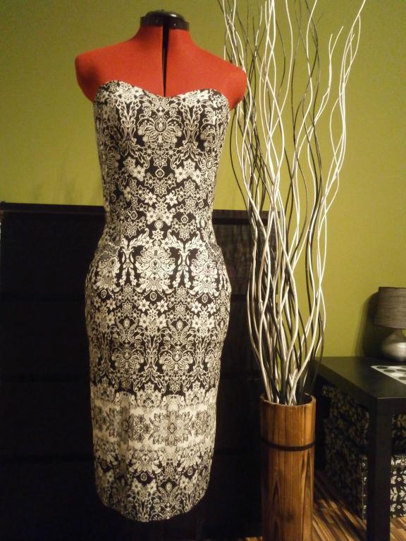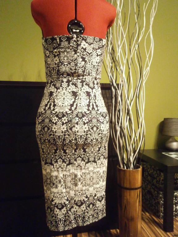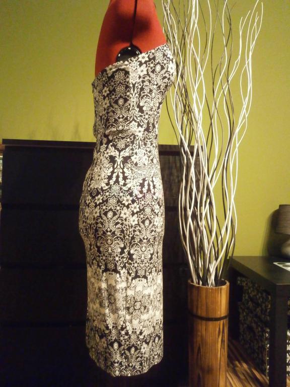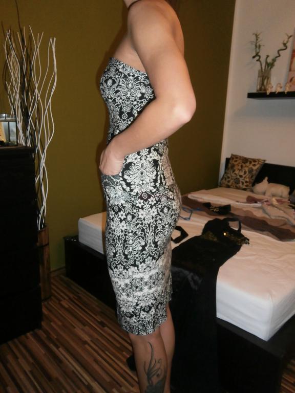 Material je velmi elasticky, prisposobi sa na hocijaku postavu (aj vacsie boky, prsia, ci tehulka). Saty maju vacky, zapinanie na zips. Prsia su mierne vystuzene, nemusi byt ani podprsenka.