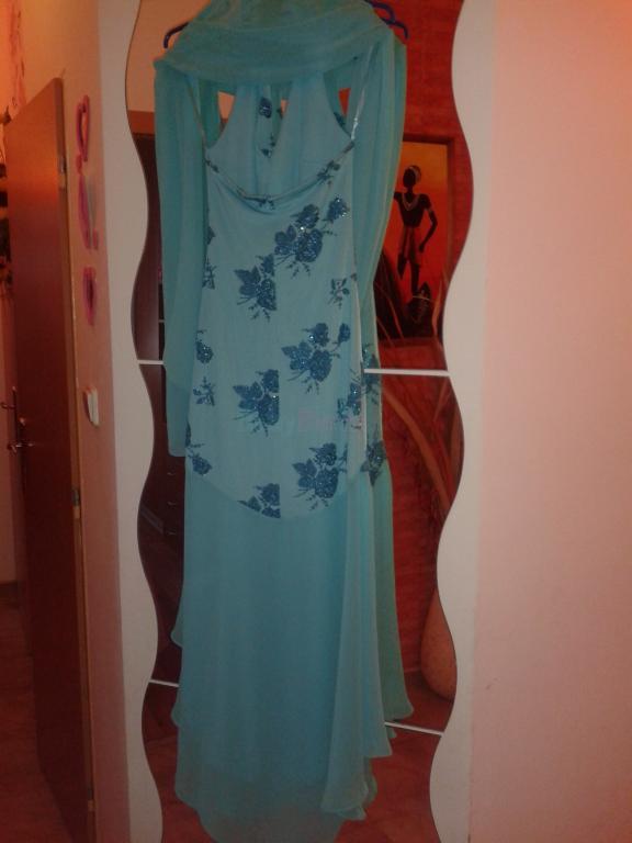 Ponúkam na predaj tieto modré šaty,úplne nové,len raz oblečené na svadbe,veľ.40.