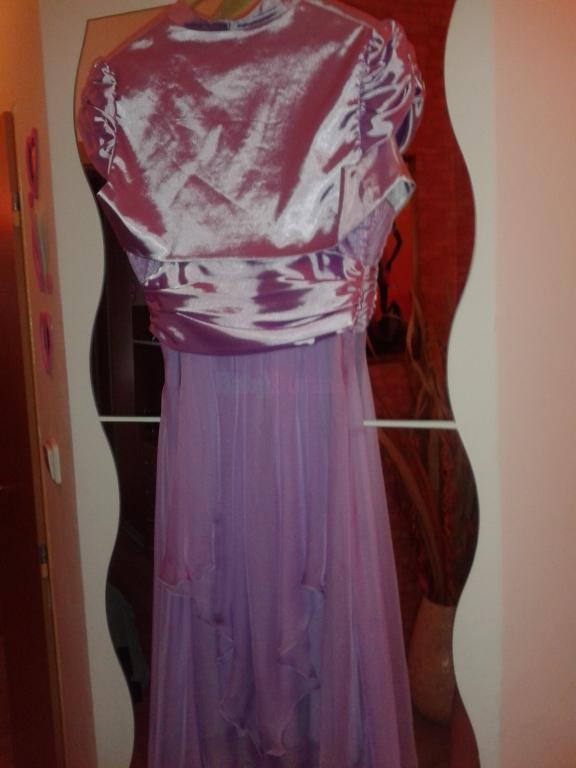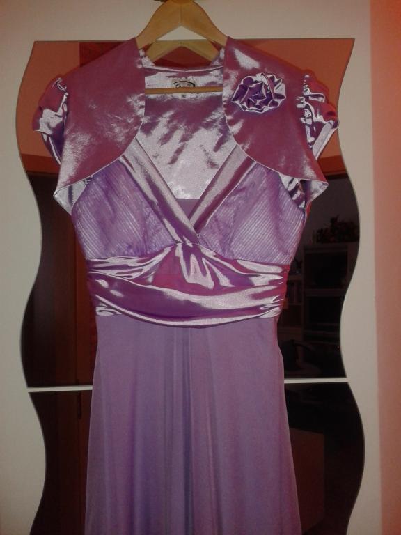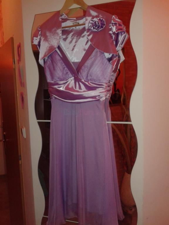 Ponúkam na predaj tieto krásne bledučko fialové šaty s bolerkom,veľ 42.Boli len raz oblečené na svadbe.